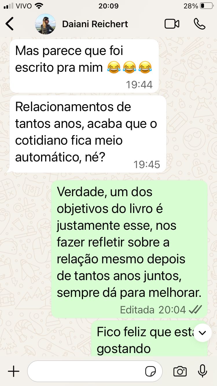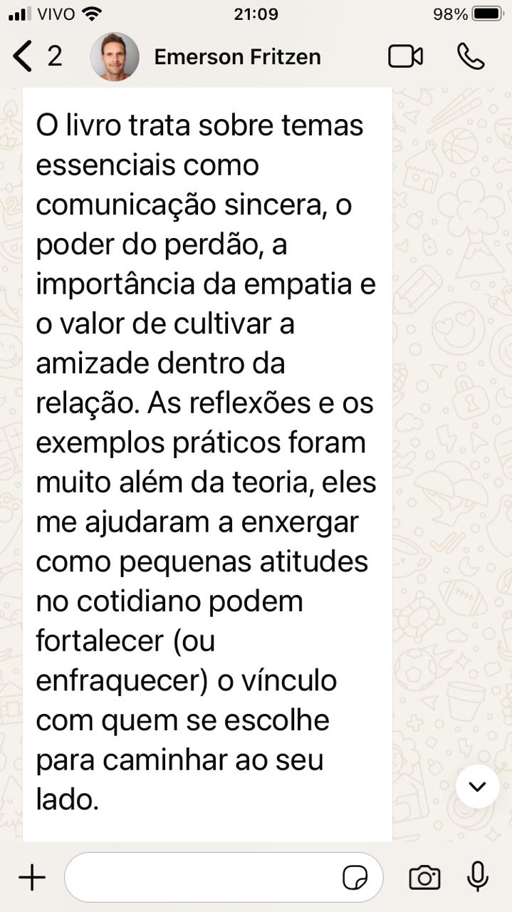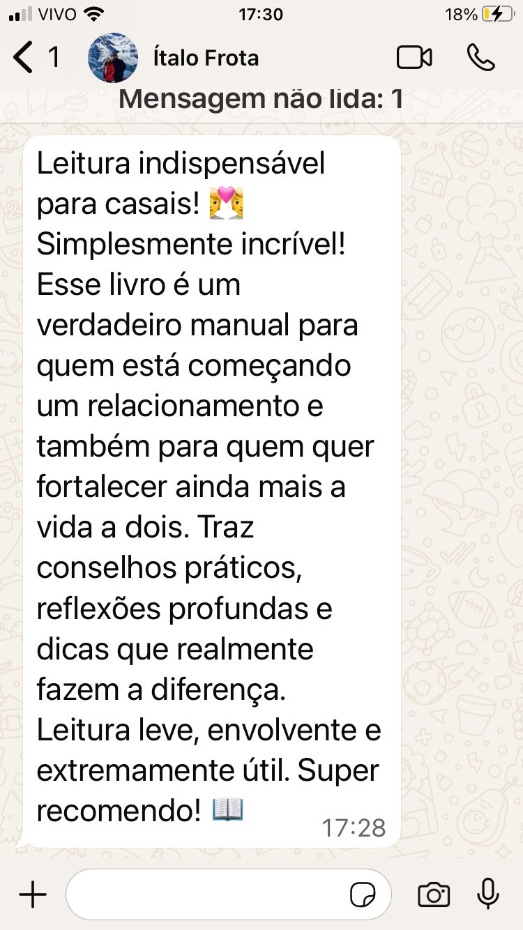 Este livro faz a gente se dar conta que muitas vezes damos valor a coisas sem importância e como podemos ajudar o nosso casamento a ter uma relação mais saudável e feliz para ambos.